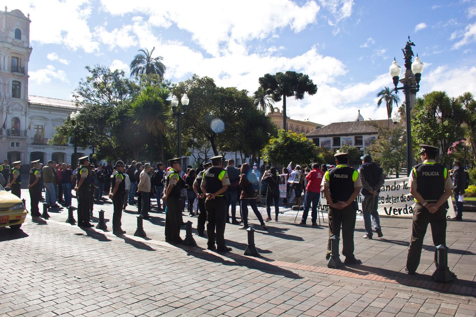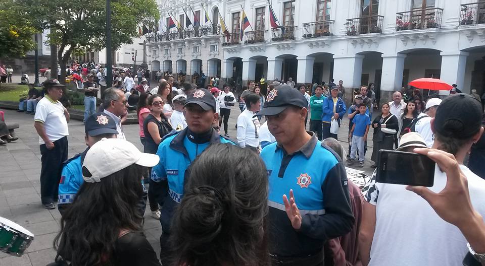 También denunciamos que durante el plantón 6 de julio en la Plaza Grande en el que nuevamente nos convocamos para visibilizar los rostros de personas desaparecidas, nuevamente personas que vestían con chompas y banderas de Alianza País llegaron a la Plaza. Esta vez no nos permitieron realizar el plantón frente al Palacio de Carondelet por lo que tuvimos que realizarlo al costado de la Plaza, por la calle Chile, nuevamente personas de civil que se encontraban junto a las personas cercanas a las personas vestidas de Alianza País se acercaron a nosotros para decirnos palabras soeces y crueles. La Policía Metropolitana pidió a estas personas que no provoquen a los familiares. Esto después de que prohibiera el uso de tambores y megáfonos.