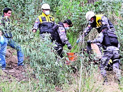 “Se presume que el cadáver fue lanzado desde la parte alta del peñasco, aproximadamente a unos 200 metros, porque ingresar hasta el fondo es muy complicado”, indicó el teniente Hamilton Flores.