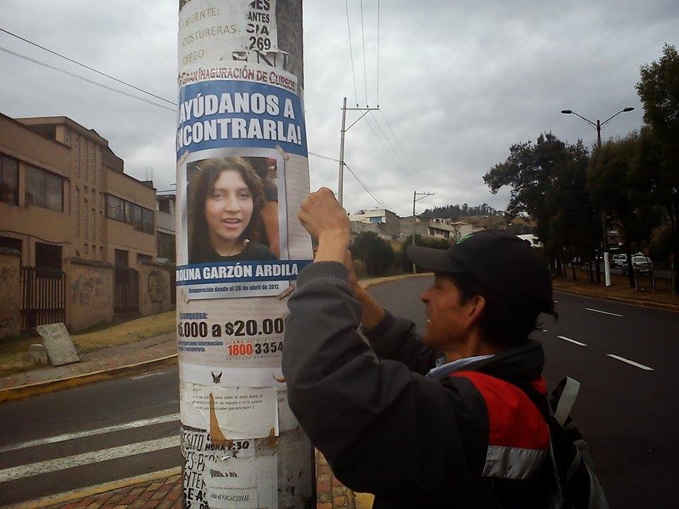 Durante la investigación por la desaparición de Carolina, la Fiscalía le dijo a Walter que su hija se ahogó en el río Machángara; meses después de no contar con prueba alguna que sustentara esa hipótesis el Estado desplazó la culpa sobre la familia Garzón que “permitía que la hija viaje sola” y culpó a la víctima de su desaparición. Hoy, 4 años después, ese mismo Estado reconoce que el policía investigador no era idóneo y cometió sendos errores y omisiones, hoy Carolina no está….. Y esa ineficacia estatal movió a Walter a buscar por sus propios medios a su hija.