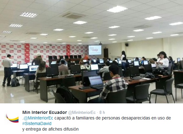 .@MinInteriorEc capacitó a familiares de personas desaparecidas en uso de #SistemaDavid y entrega de afiches difusión pic.twitter.com/BHI9G4aaFo