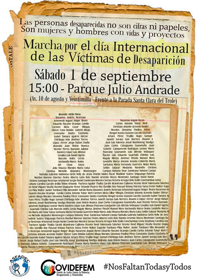 de Personas Desaparecidas en Ecuador (Asfadec) y Luna Roja invitan  a los medios de comunicación y a la sociedad