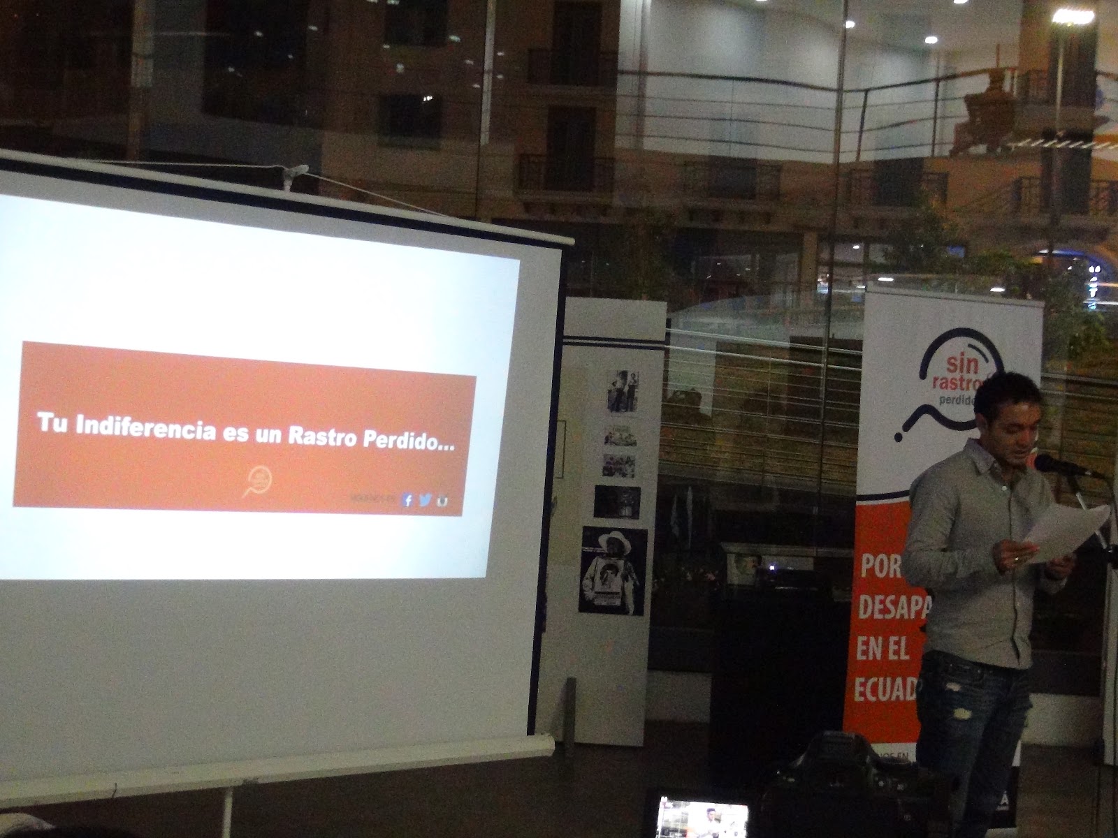 | Luis Sigcho en la presentación de la campaña Sin Rastro Perdidos. |